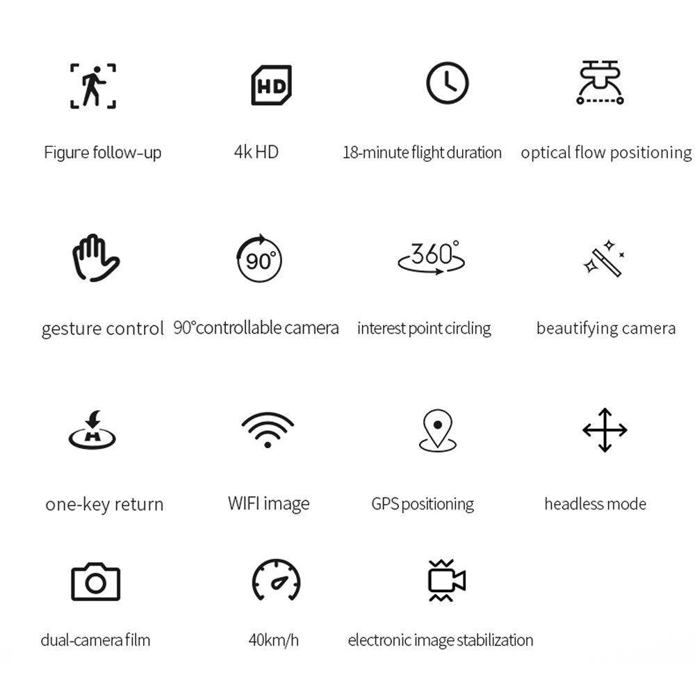T, HD Figure follow-up 4kHD 18-minute flightduration optical flow positioning 90 3603 gesture control 90controllable camera interest beautifying camera one-key return WIFI image GPSpositioning headless mode dual-camerafilm 40km/h electronic image stabilization point circ