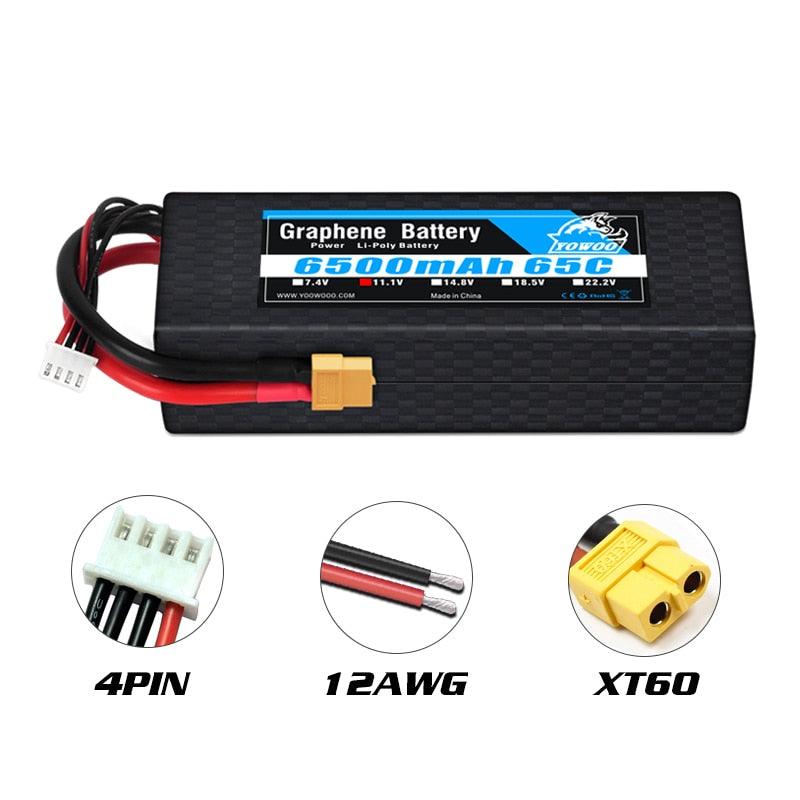 Yowoo Graphene Lipo Battery 6500mah 2S 3S 4S 7.4V 11.1V 14.8V T XT60 XT90 EC5 Hard Case Car Airplanes RC Parts 65C